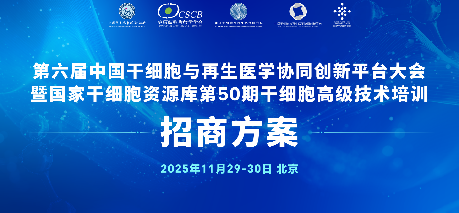 招商方案 | 第六届中国干细胞与再生医学协同创新平台大会暨国家干细胞资源库第50期干细胞高级技术培训【第一轮通知】
