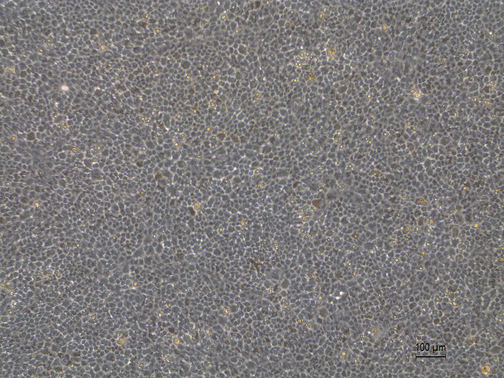 | 细胞描述 | 细胞单层贴壁生长,细胞呈六边形,胞质中有黑色素颗粒存在;具有体外吞噬功能 |