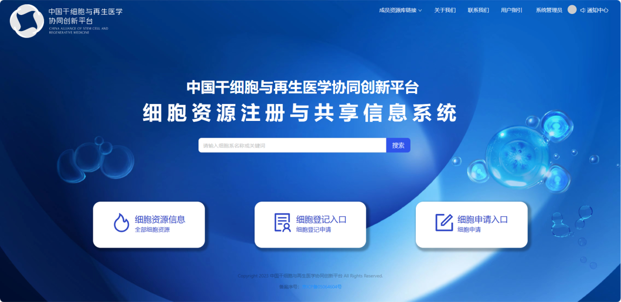 中国干细胞与再生医学协同创新平台细胞资源注册与共享信息系统:cascrm.ioz.ac.cn