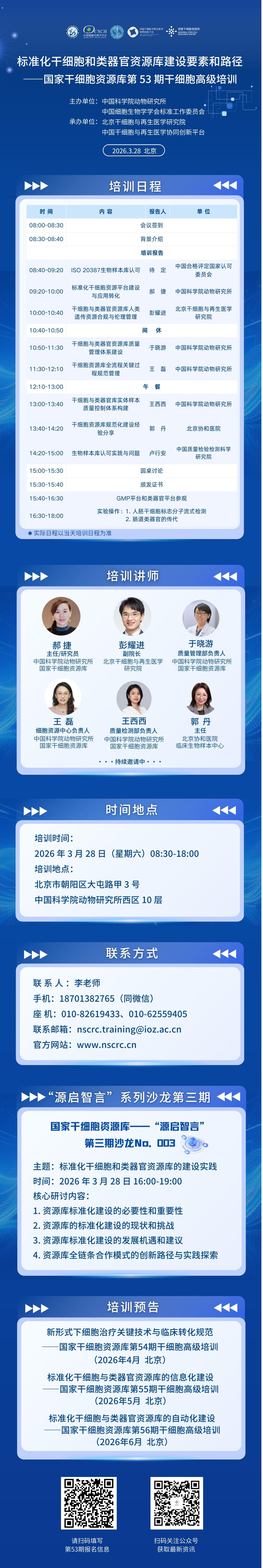 【火热报名中】标准化干细胞和类器官资源库建设要素和路径——国家干细胞资源库第53期干细胞高级培训